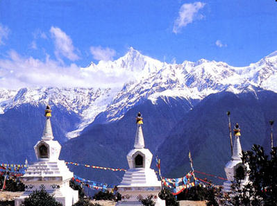 梅里雪山位于德钦县东北部10公里处,是滇藏界山,传说是藏传佛教尼玛派的分支枷居巴的保护神。梅里雪山是怒山山脉的中段,其北段为西藏左贡的红拉山,南段为碧罗雪山。梅里雪山共有十三峰,主峰卡瓦格博峰是一座金字塔型的雪山,藏语意为“白色雪山”,被誉为“世界最美的雪山”。海拔6740公尺,是...