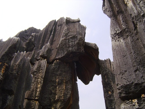 阿诗玛是一位腼腆而又健谈的姑娘,她告诉我们,石林这一带在2.7亿年前是一片汪洋大海,由于地壳的运动,海底上升露出海面,二百万年前形成了拔地而起的石林。石林景区由7个自然景观区组成,占地面积3万多公顷。我们今天参观的是大小石林景区,它以雄、奇、幽、险等特色被誉为“天下第一奇观”……