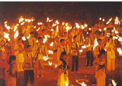 喜欢夜晚的梦幻,我在院子里溜达,遇到了好心的服务员,她也是本地人,撒尼族的姑娘其实都很健谈呢!她告诉我每年农历六月二十四,为撒尼人传统火把节,石林将举行盛大的斗牛、摔跤、歌舞及篝火晚会,通宵达旦,场面十分壮观,被称为“东方狂欢节”。石林撒尼人能歌善舞,这里的阿细跳月、大三弦舞很值得欣赏,是最受欢迎的传统民族舞蹈。(很可惜,我错过了火把节,只能等下一次了!)