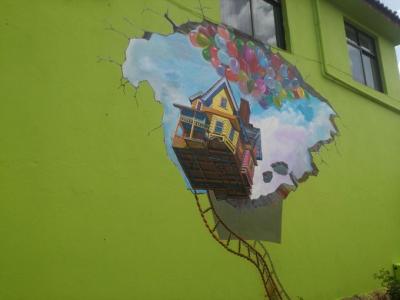除了五颜六色的房子,彩色村的墙壁也是一大亮点。每一副画豆豆营造出3D效果,栩栩如生,带着浓浓的生活气息~~~~
