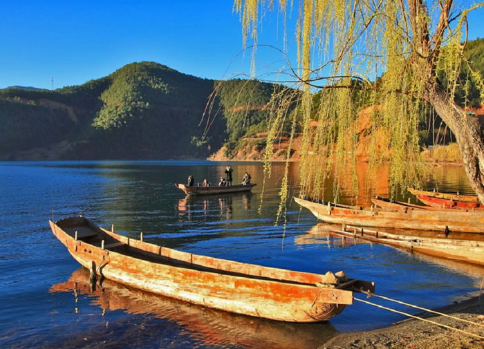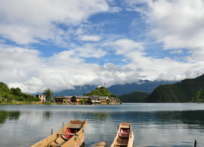 景区特色:猪槽船,成全了多少谈情说爱,接交“阿肖”的摩梭伴侣。转海时,在船头燃起青松枝叶,一缕缕青烟随着缓行的独木舟飘散;人坐船上.以舟代步,绕湖而游;猪槽船中,不以日出为早.不以日落为迟,周围的一切静悄悄,令人疑在“不知有汉,无论魏晋”的桃花源里,潇洒和浪漫到忘却了时间,忘却了自己。
