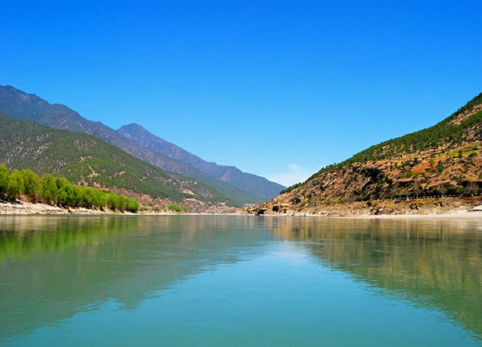 位于云南省西北部的迪庆藏族自治州香格里拉县南部沙松碧村与丽江市石鼓镇之间的长江第一湾,海拔18米,距香格里拉县城130公里,有公路直达。万里长江从“世界屋脊”——青藏高原奔腾而下,巴塘县城境内进入云南,与澜沧江、怒江一起在横断山脉的高山深谷中穿行形成了“三江并流”的壮丽景观。到了香格里拉县的沙松碧村,突然来了个100多度的急转弯,转向东北,形成了罕见的"V"字形大弯,“江流到此成逆转,奔入中原壮大观”,人们称这天下奇观为“长江第一湾”。